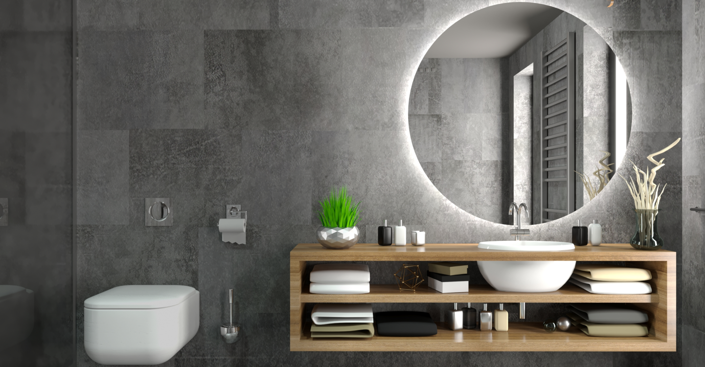 Φ32" Frameless LED Backlit Round Mirror Single-Touch Dimmer Switch & Defogger 45° Wall-Mounted