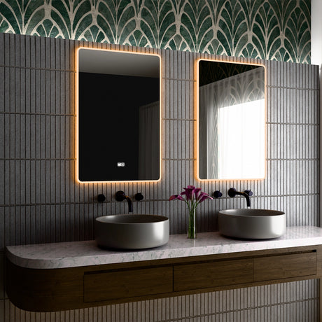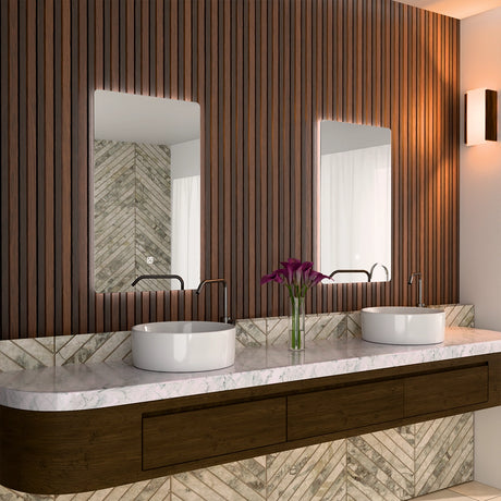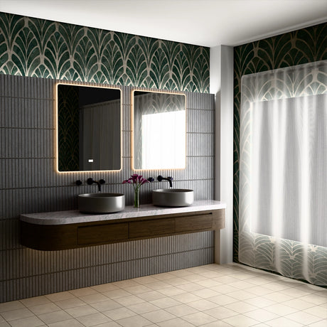 24"× 30" Frameless LED Backlit Mirror Single-Touch Dimmer Switch & Defogger 45° Wall-Mounted