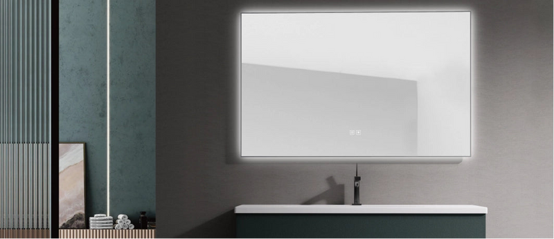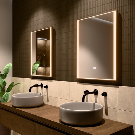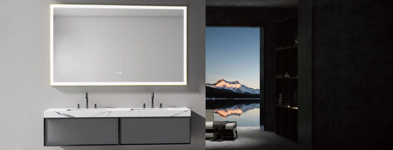 36"×36" Square LED Mirror, Dual-Touch Dimmer & Defogger, 3CCT Back+Front Lit, 45° Wall-Mounted