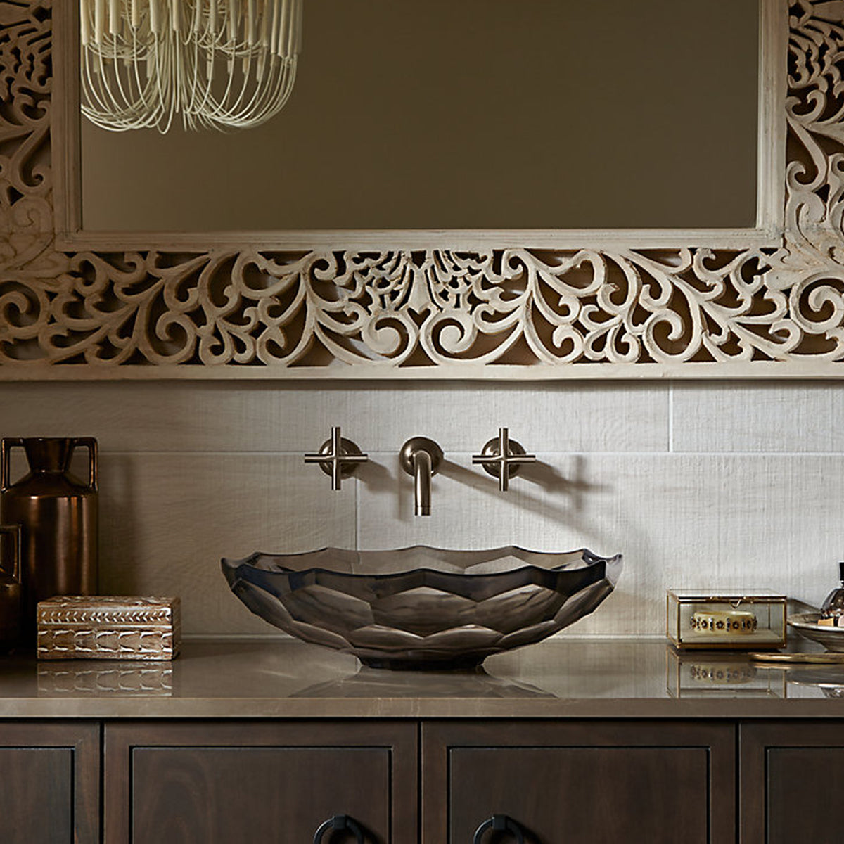 - Generously sized basin with light-reflecting facets