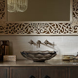 The Briolette glass sink displays a uniquely faceted shape inspired by the precisely cut surfaces of precious stone. Gently curved walls highlight the natural textural qualities of glass and create a striking reflective effect. This sink sits on top of the counter as a brilliant addition to your bath or powder room.