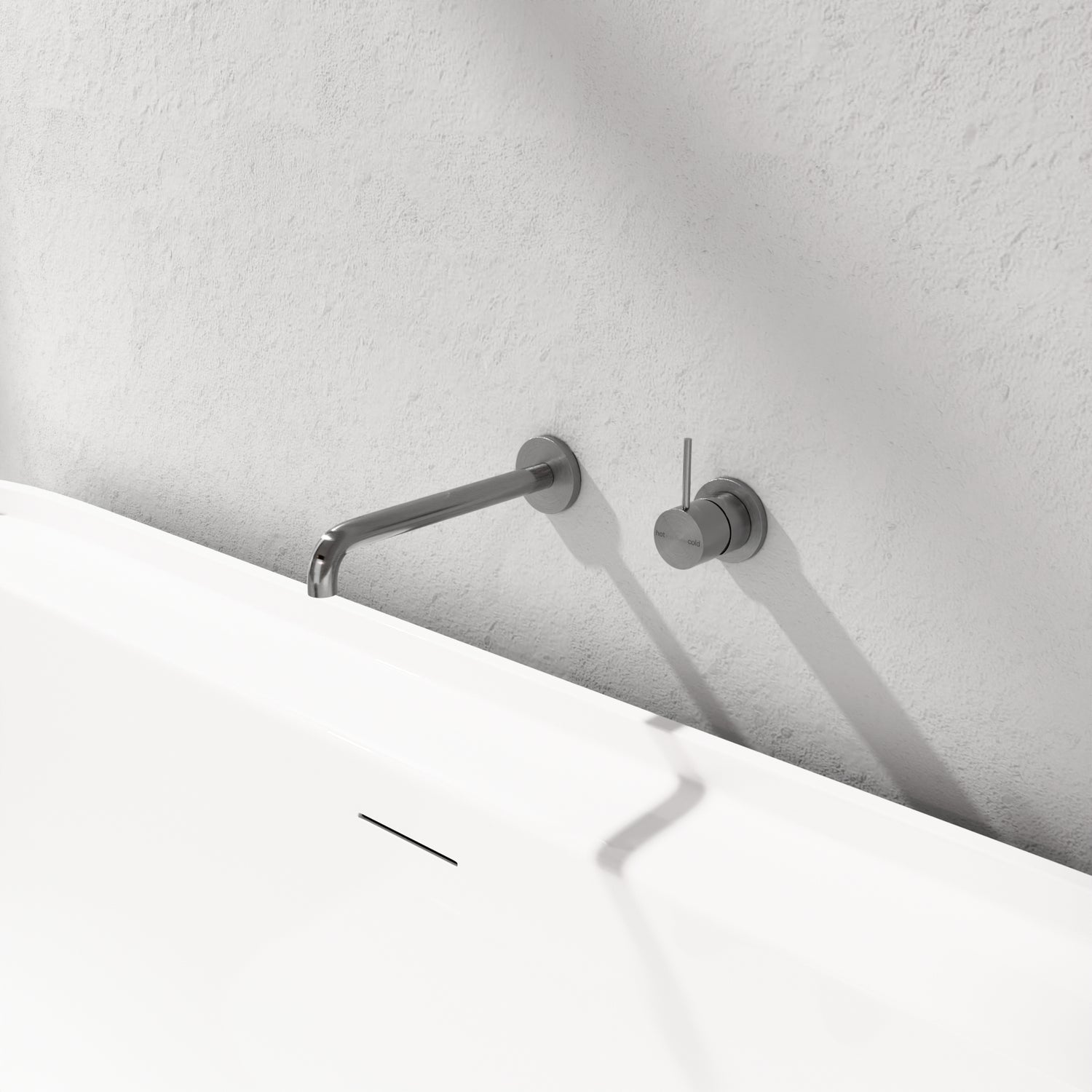 Mecca Wall Basin Mixer Separate Back Plate Handle Up 185mm Spout Gun Metal