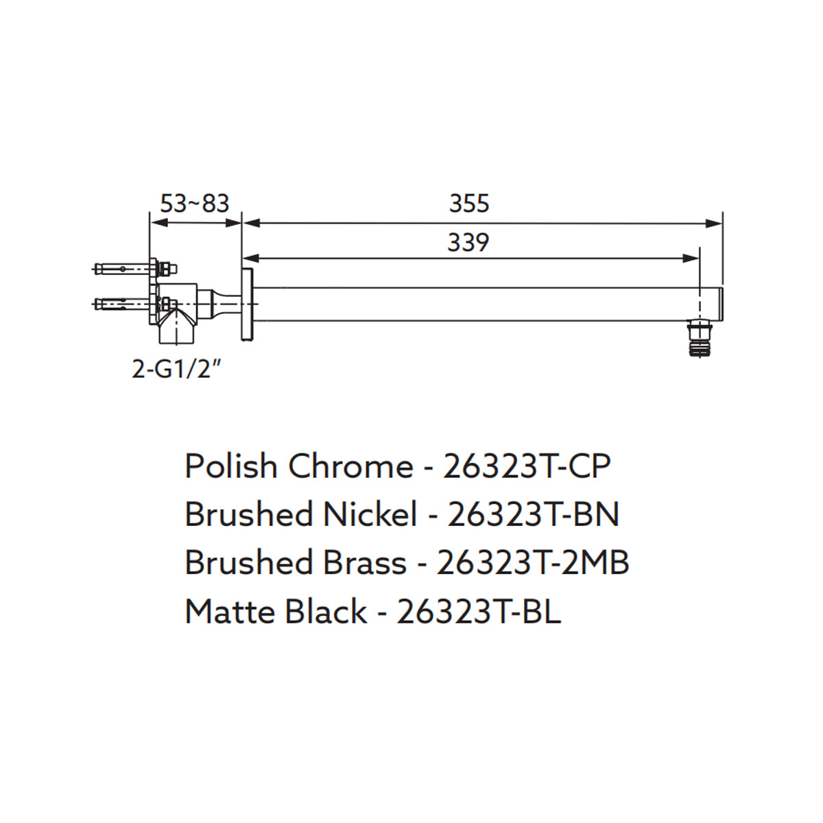 Statement Dual Function Wall Mount Rainhead Arm 355mm Matte Black 26323T-BL