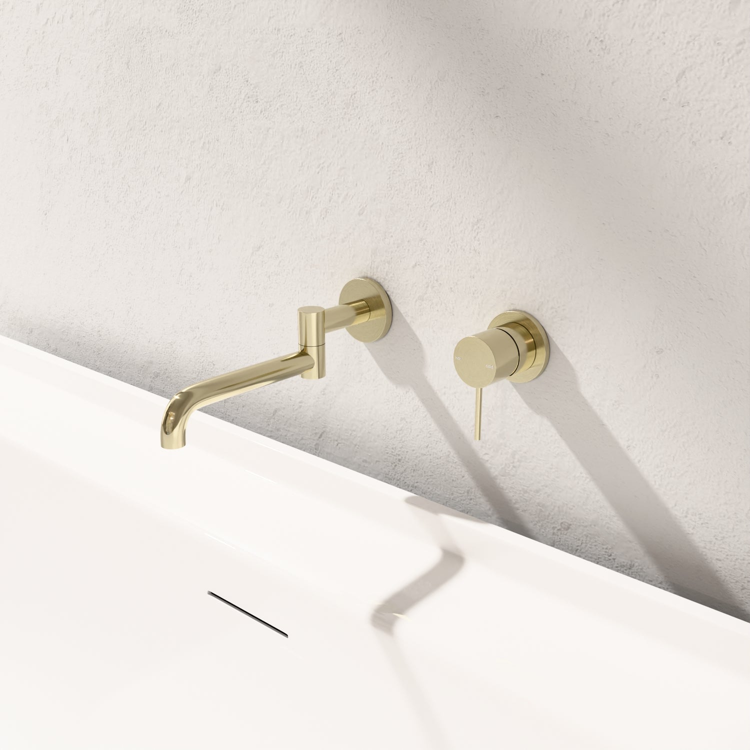 Mecca Wall Basin/Bath Mixer Swivel Spout 225mm Brushed Gold