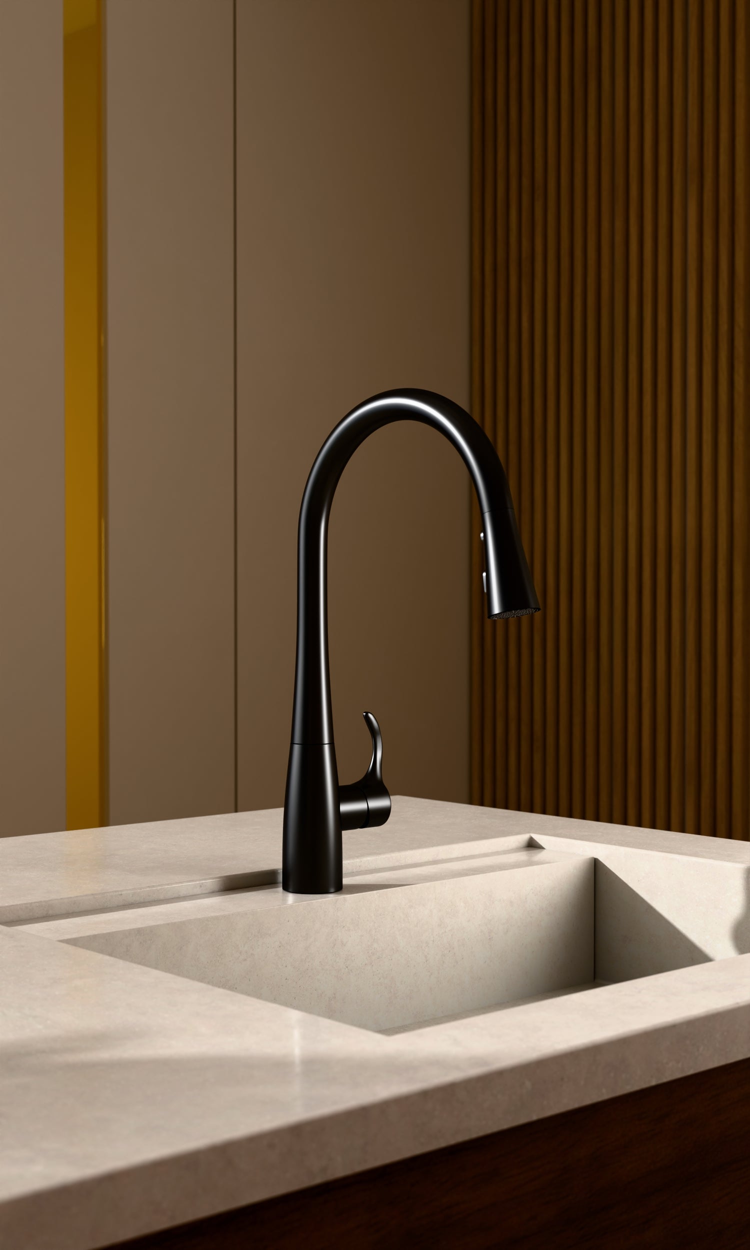 An innovative fit for a variety of kitchens and tasks, this Simplice kitchen faucet combines an elegant, universal design with exceptional ergonomics and functionality. The high-arch swing spout rotates 360 degrees, while the smoothly maneuvering sprayhead pulls down into the sink for up-close tasks, or out of the sink to fill pots. Sculpted buttons on the sprayhead ensure simple operation even with wet, soapy hands. Sweep spray creates a wide, forceful blade of water for superior cleaning. Kohler's docking system, DockNetik, secures the pull-down sprayhead to the spout.