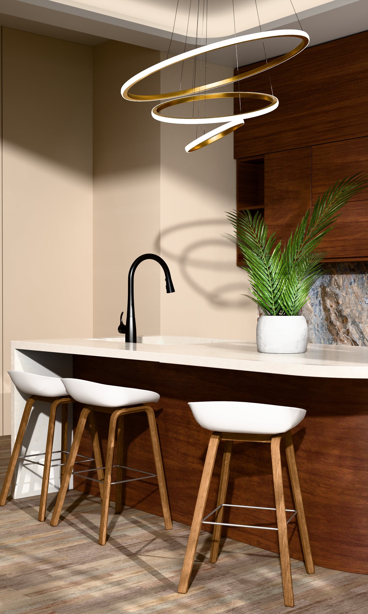 - High-arch spout offers superior clearance for filling pots and cleaning.