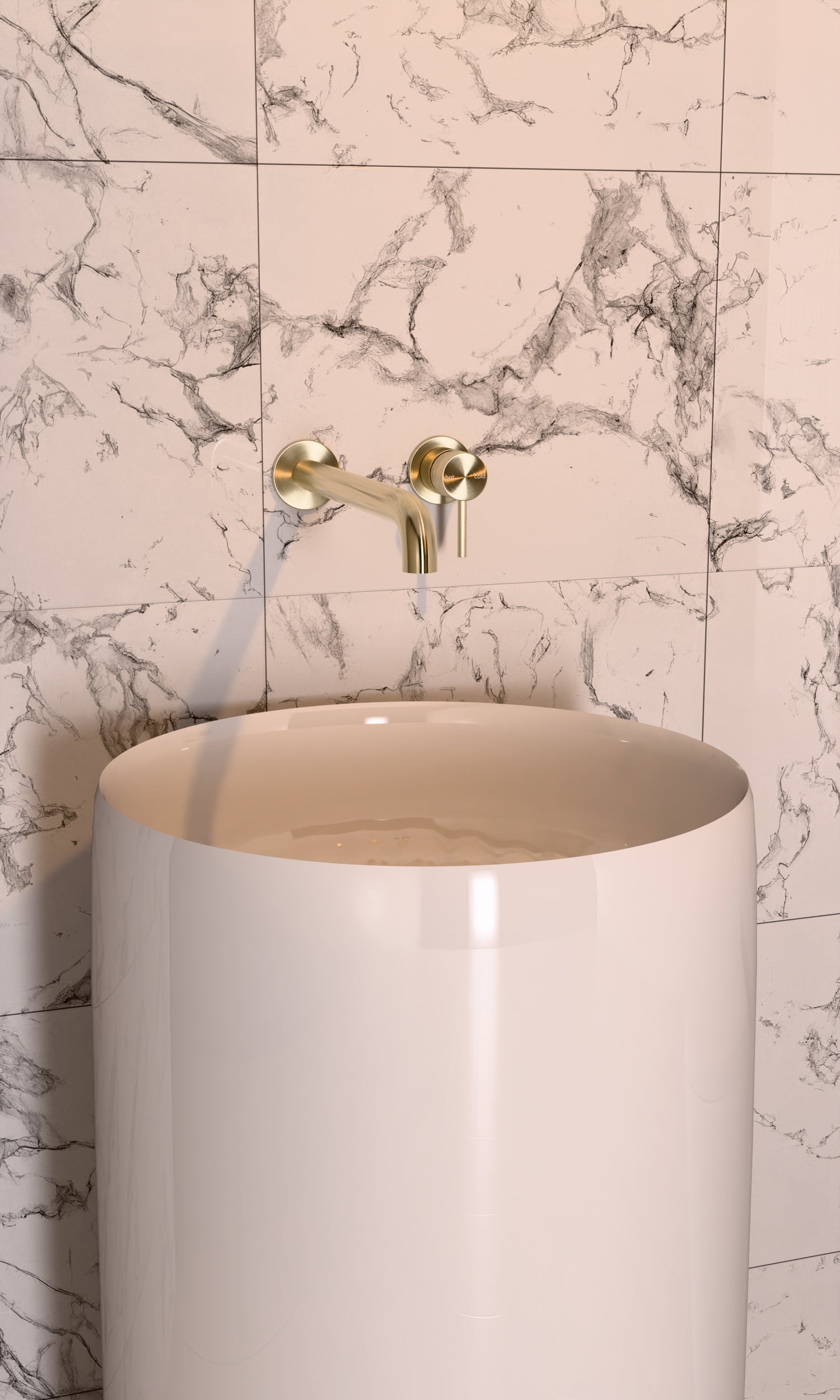 Zen Ss316l Wall Basin/Bath Mixer Separate Back Plate 230mm Spout Brushed Gold